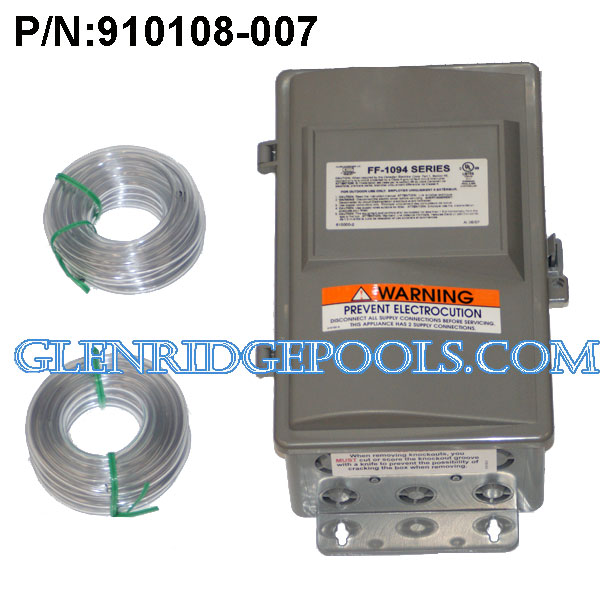 Allied Innovations Control Circuit Aux 4 Function Button 120V/240V 24H Timer Assembly Kit P/N: 910108-007 Input Service Rating: 120 VAC, 16 A, 1 HP, 60 Hz, 2 wire plus ground or 240 VAC, 16 A, 2 HP, 60 Hz, 3 wire plus ground. Output: Maximum output ratings for motor or resistive load only - if two output circuits are used, the combined total of both circuits shall not exceed the ratings noted below: 120 V, 16 FLA or; 240 V, 12 FLA and 240 V, 16 A Resistive.